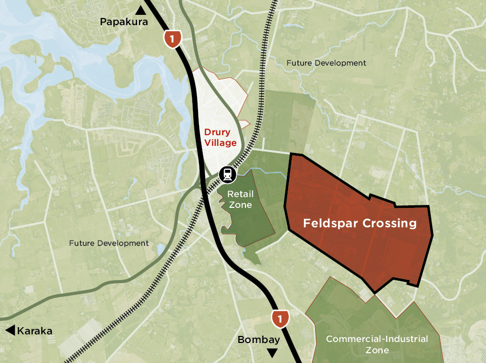 Situated in Drury, Feldspar Crossing is located 30 minutes south of Auckland’s CBD, and is at the heart of Drury East's new and exciting large scale residential and commercial development.